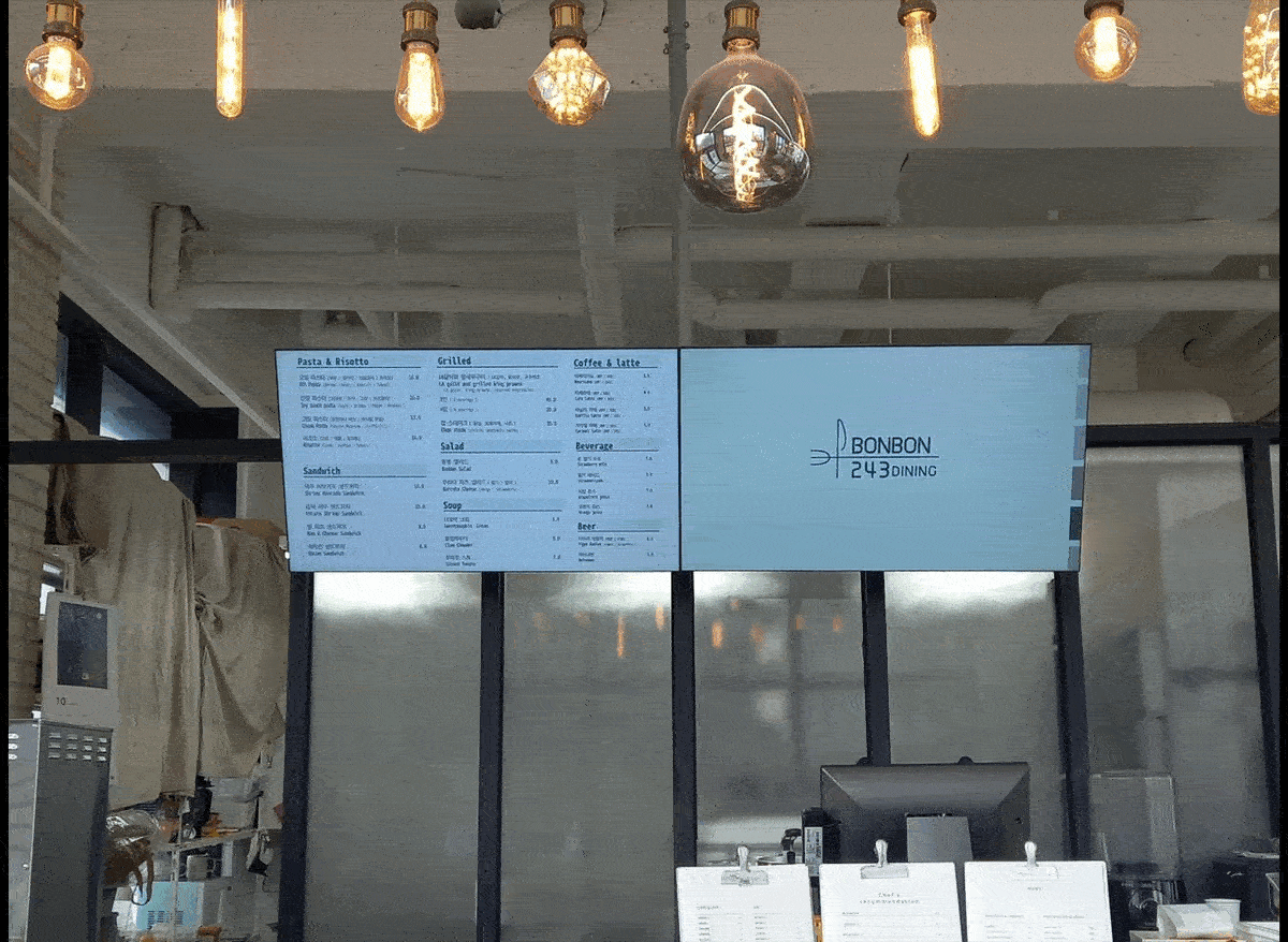에이브이팝.AVPOP.원주 봉봉243 카페 DID모니터 설치사례 및 시공사례
