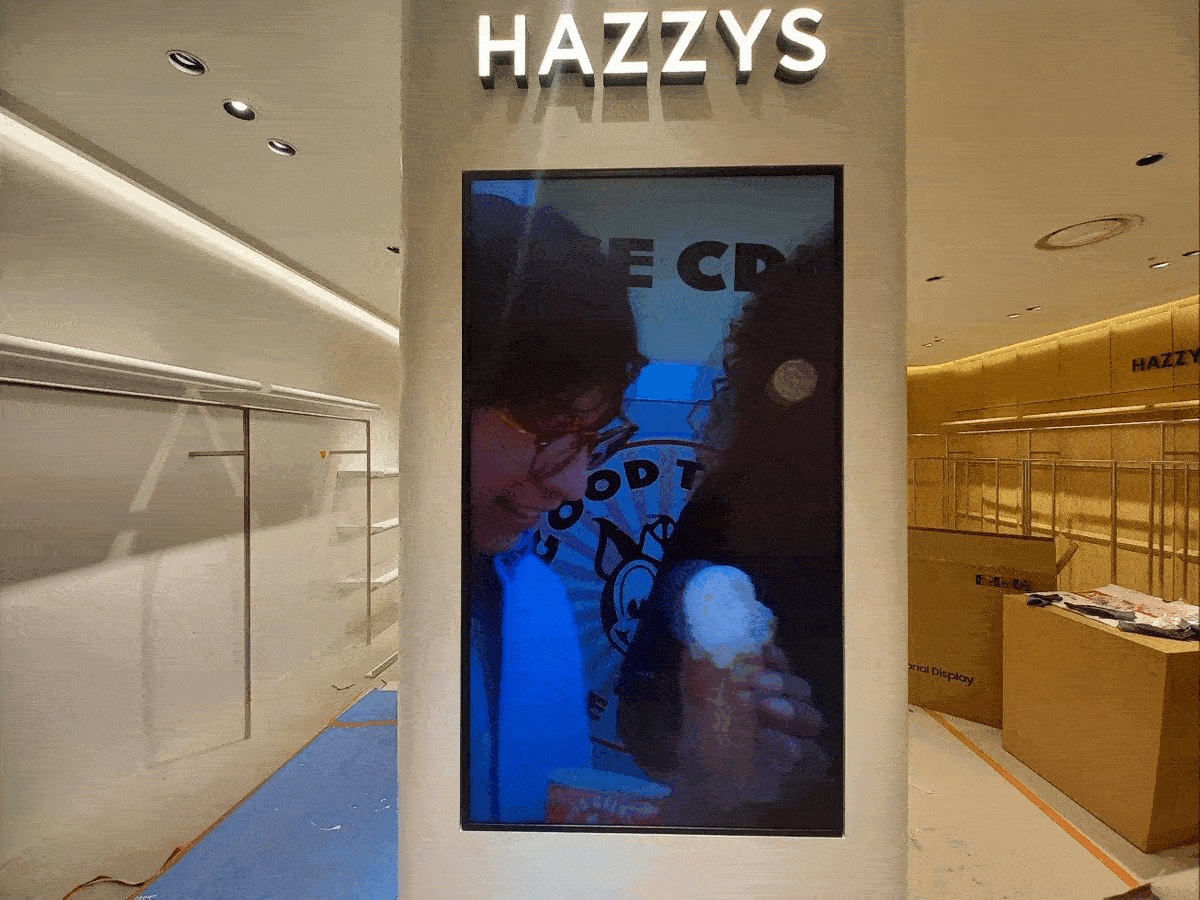 에이브이팝.AVPOP.고양 스타필드 헤지스매장 DID모니터 설치사례 및 시공사례