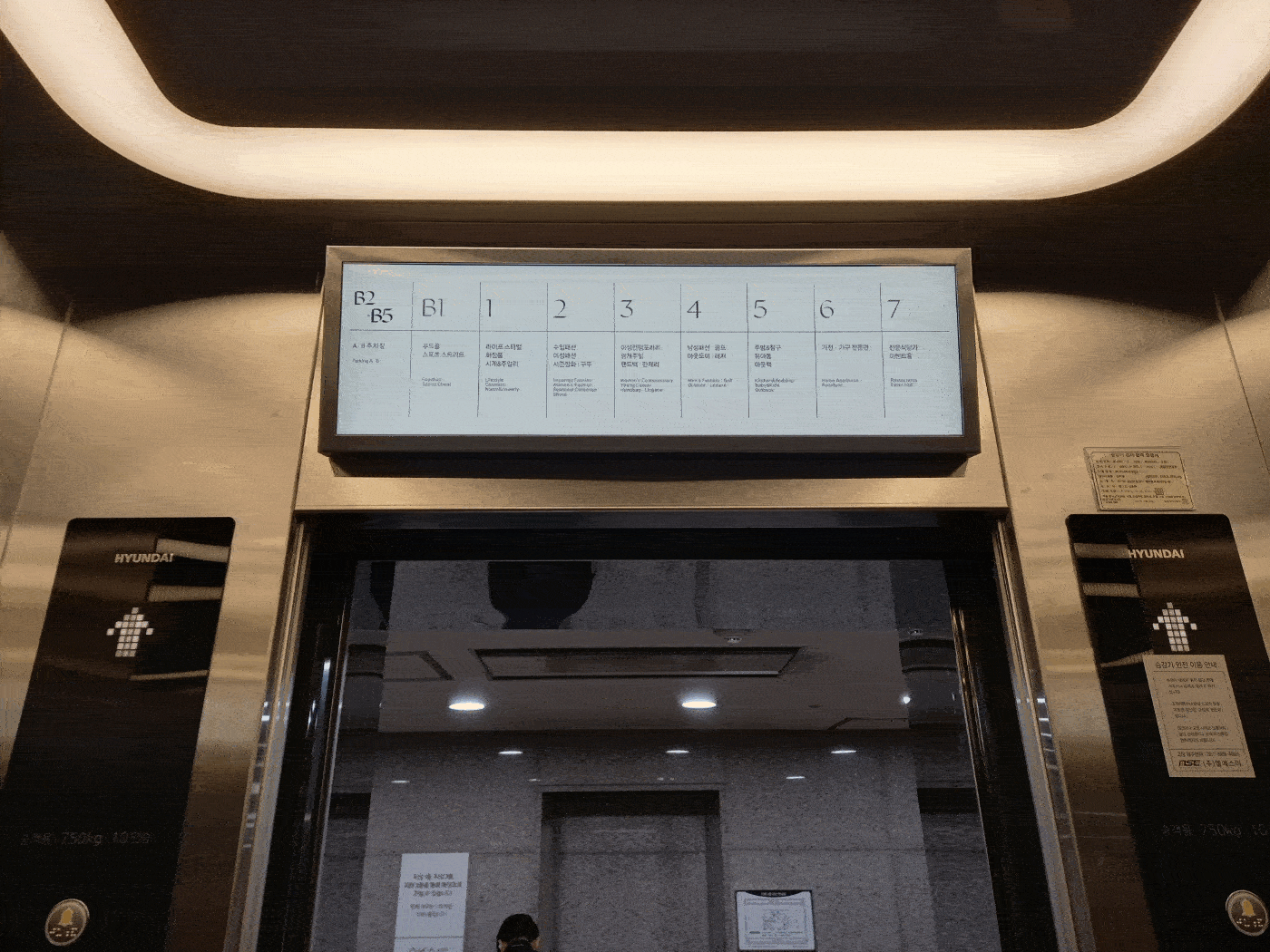 에이브이팝.AVPOP.AK PLAZA 분당 C동 E/V 내부 모니터 설치사례 및 시공사례